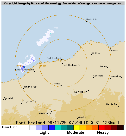 Measured at PORT HEDLAND AIRPORT, 127.3KM away