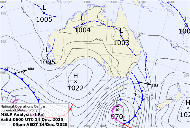 Wondering why we don't we use the ECMWF 9km model? The BOM model is based on the 'EC' model so they have very similar model physics and are not independent. By showing BOM and GFS models we can present two high quality independent forecasts.